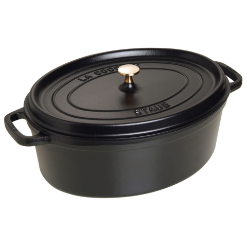 Staub La Cocotte Ovális Rakott Edény: Tökéletes sütés és főzés 29 cm-ben Ez a Staub La Cocotte 29 cm-es ovális rakott edény a tökéletes választás ínycsiklandó ételek elkészítéséhez. Prémium minőségű öntöttvasból készült, matt fekete zománcozással, ame...