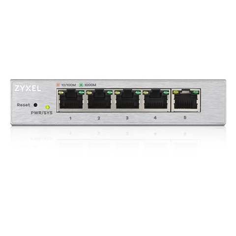 Switch otthoni használatra - desktop, managed, 5× RJ-45, 5× 10/100/1000Base-T, IGMP, Auto-MDI/MDIX, auto-negotiation és plug and play, QoS (Quality of Service), VLAN és LACP link aggregáció, 10 Gb/s váltókapacitás, üzemi hőmérséklet 0 - 40 °C, mérete 26 × 121 × 75 mm (Ma×Sz×Mé), tömege 233 g A GS1200 Gigabit Switch gyors, PoE-meghajtású és könnyen kezelhető intuitív webes felületen. Bár megfizethető, támogatja a modern biztonsági és átviteli képességeket. A g