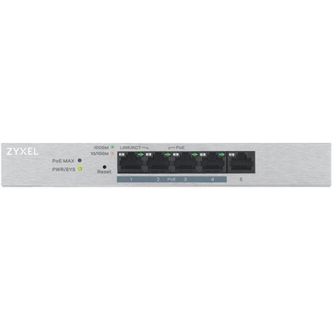 Switch otthoni használatra - desktop, managed, 5× RJ-45, 5× 10/100/1000Base-T, IGMP, Auto-MDI/MDIX, auto-negotiation, plug and play és PoE, QoS (Quality of Service) és VLAN, 802,3af (PoE) és 802,3at (PoE+) támogatás, 4 PoE bemenet (PoE budget 60 W), 10 Gb/s váltókapacitás, üzemi hőmérséklet 0 - 40 °C, mérete 26 × 193 × 84 mm (Ma×Sz×Mé), tömege 392 g A GS1200 Gigabit Switch gyors, PoE-meghajtású és könnyen kezelhető intuitív webes felületen. Bár megfizethető, támo