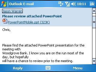 Az Outlookon kívül a Windows Mobile 5.0 tartalmazza a Word és az Excel mobil eszközre írt változatait, a Word Mobile-t és az Excel Mobile-t, amik támogatják a táblázatok, listák, beágyazott képek, diagramok stb. kezelését. Ezen kívül még PowerPoint prezentációkat is megnézhetsz PDA-don – bár sajnos nem módosíthatod őket.